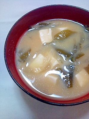 玉ねぎと豆腐とわかめの味噌汁