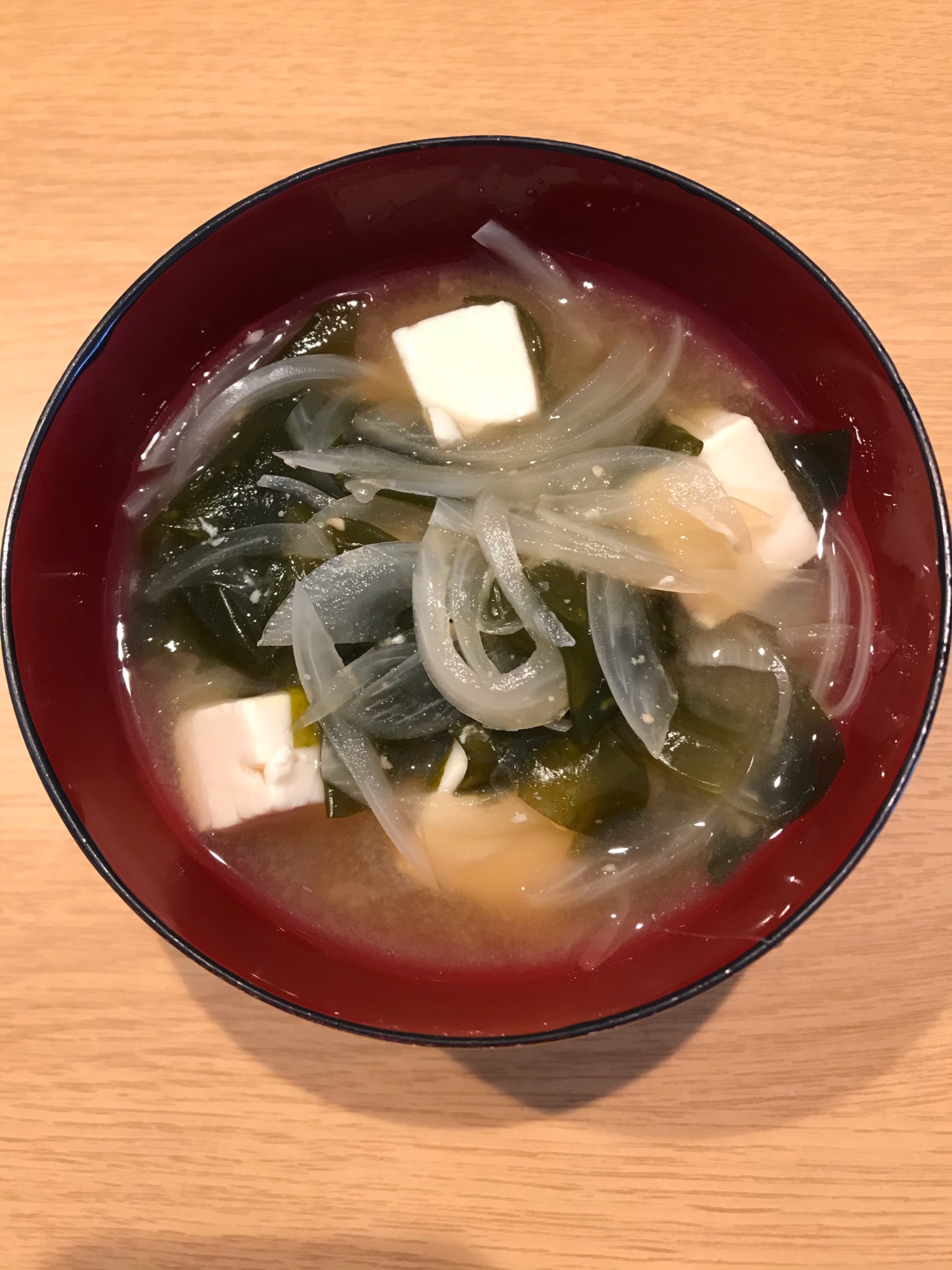 玉ねぎと豆腐とワカメの味噌汁