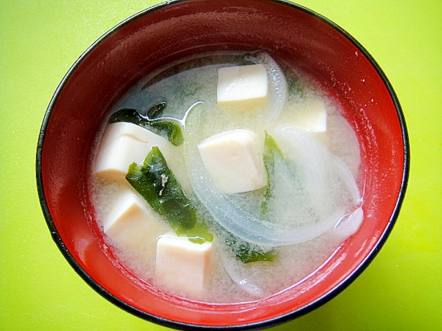 豆腐とワカメと玉ねぎのお味噌汁