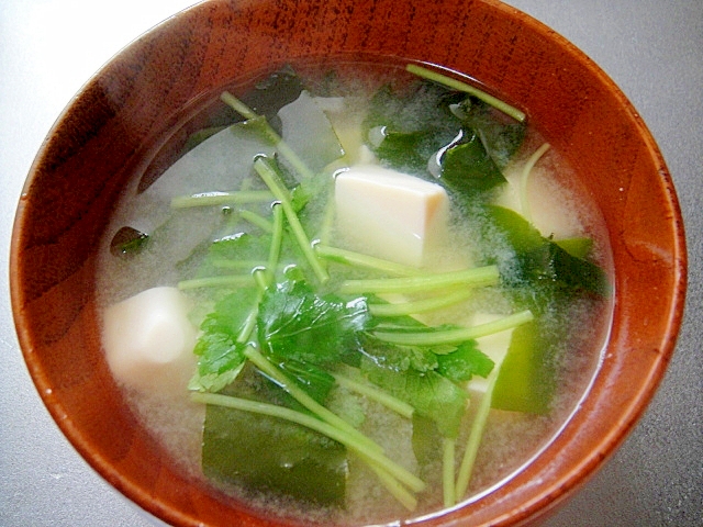 豆腐わかめ三つ葉の味噌汁 レシピ 作り方 By Mint74 楽天レシピ