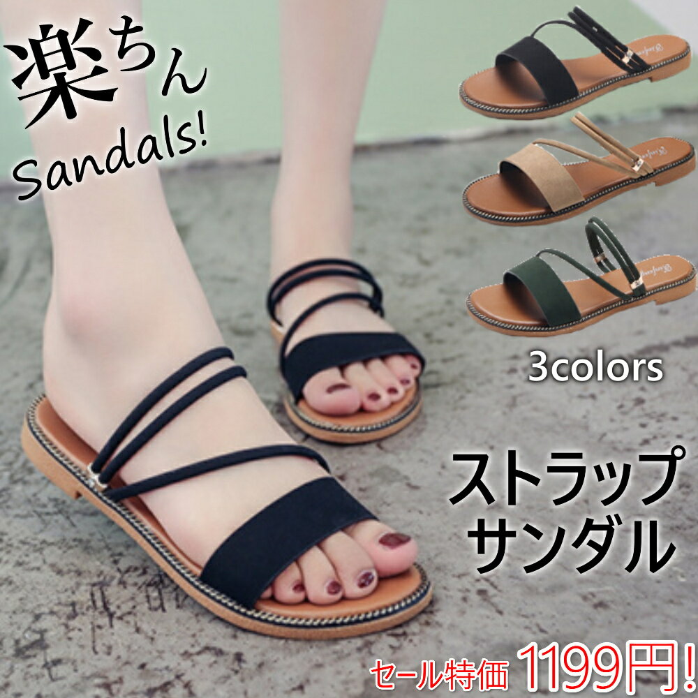 クーポン セール Off コンフォートサンダル レディース ストラップ フラットヒール サンダル 歩きやすい ミニミニストア Miniministore Magaseek